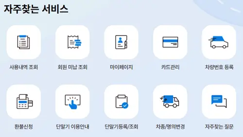 - 계좌이체, 신용카드, 가상계좌 납부 구간 : 한국도로공사, 부산 울산, 서울 춘천